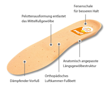 Das anatomisch geformte Fußbett gibt optimalen Halt und Stabilität beim Auftritt. Das natürliche Abrollen des Fußes wird durch die Dämpfung im Vorfußbereich ermöglicht.