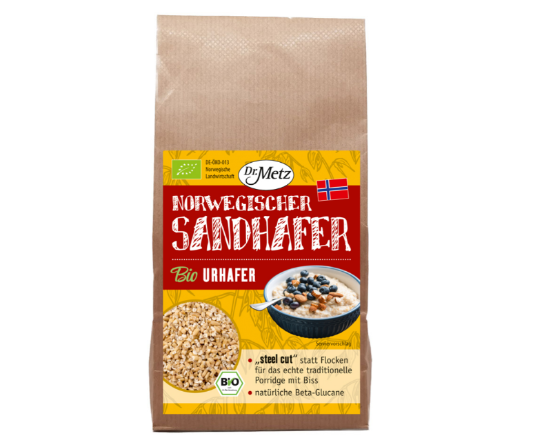 Norwegischer Sandhafer zählt zu den gesunden Urgetreiden. Sandhafer hat eine besondere Nährstoffzusammensetzung, er ist reich an Eisen, Zink und dem Ballaststoff Beta-Glucan.