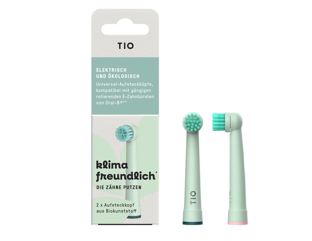 Der runde Bürstenkopf von TIO reinigt sanft und gründlich jede Zahnfläche und hinterlässt ein glattes und angenehmes Gefühl. Die Borsten sind aus Nylon 10.10, eine pflanzliche Alternative aus Rizinusöl. Der Bürstenkörper wird aus Kiefernöl gewonnen und zu Kunststoff verarbeitet, welchen Du ganz einfach im Restmüll entsorgen kannst. Die Aufsätze sind mit den rotierenden elektrischen Zahnbürsten von Oral-B® kompatibel: